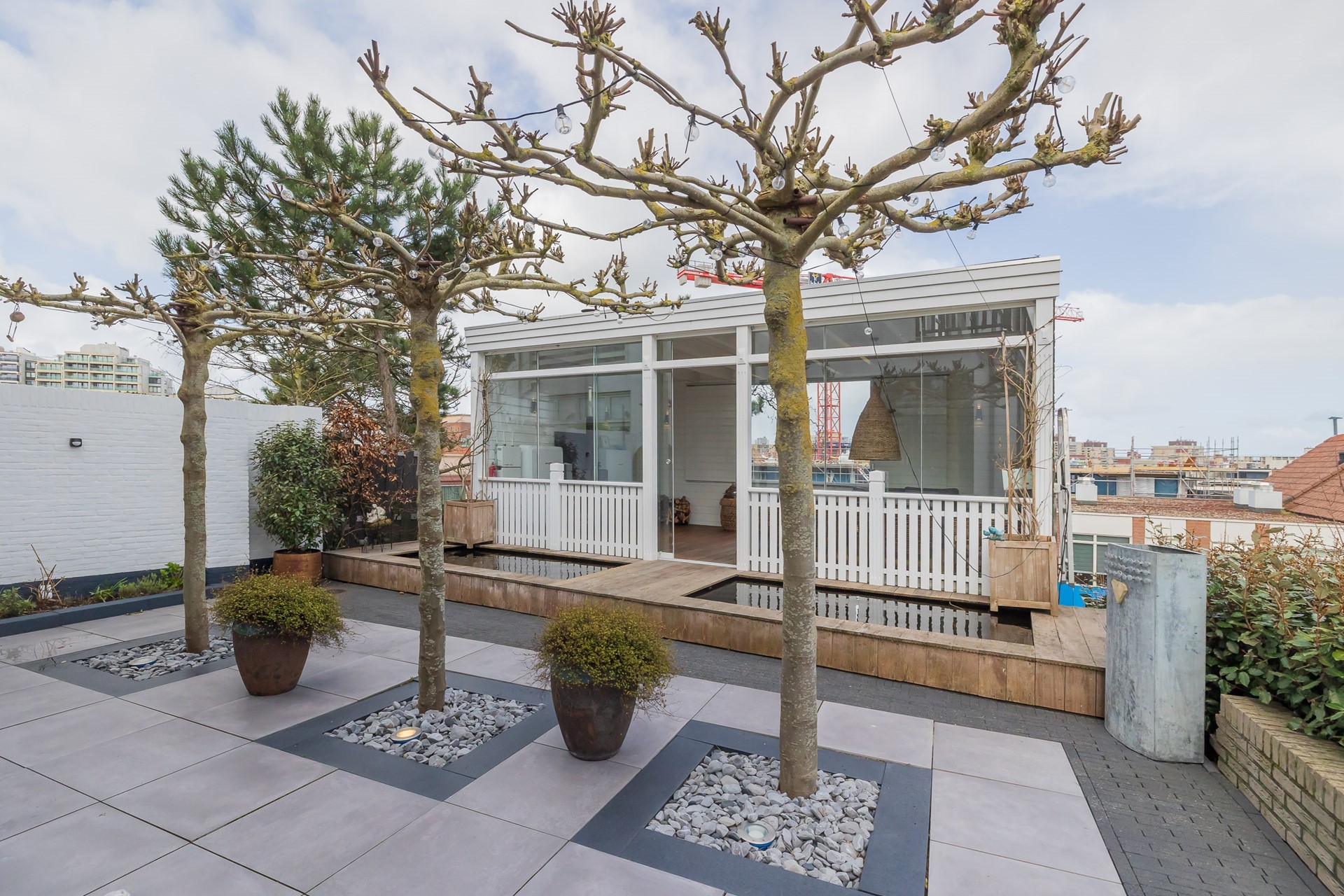 De voortuin op het zuiden maakt het plaatje compleet. Door de unieke ligging op het duin geniet je hier van een verrassend vrij uitzicht over Noordwijk. Een plek waar je aan het einde van de dag nog even buiten zit met een goed glas wijn, terwijl de laatste zonuren de villa een warme gloed geven.