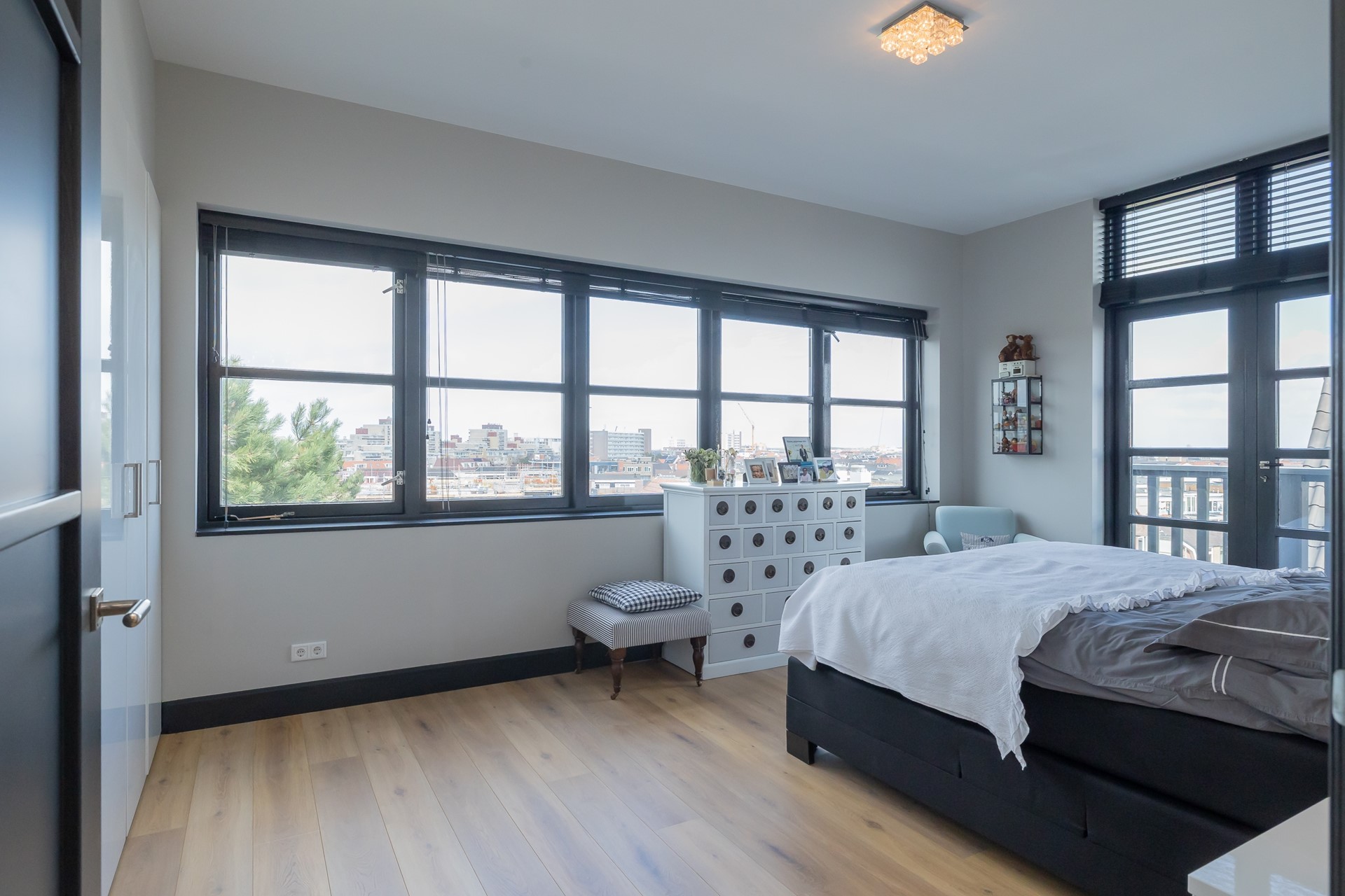 De slaapkamers zijn ruim en licht, waarbij beide slaapkamers op de eerste etage beschikken over een eigen balkon. De luxe badkamer vormt een comfortabele wellnessruimte met een ruime inloopdouche met regendouche, een toilet en een stijlvol badkamermeubel waarin de wasmachine en droger fraai zijn weggewerkt, met als extra pluspunt het balkon.